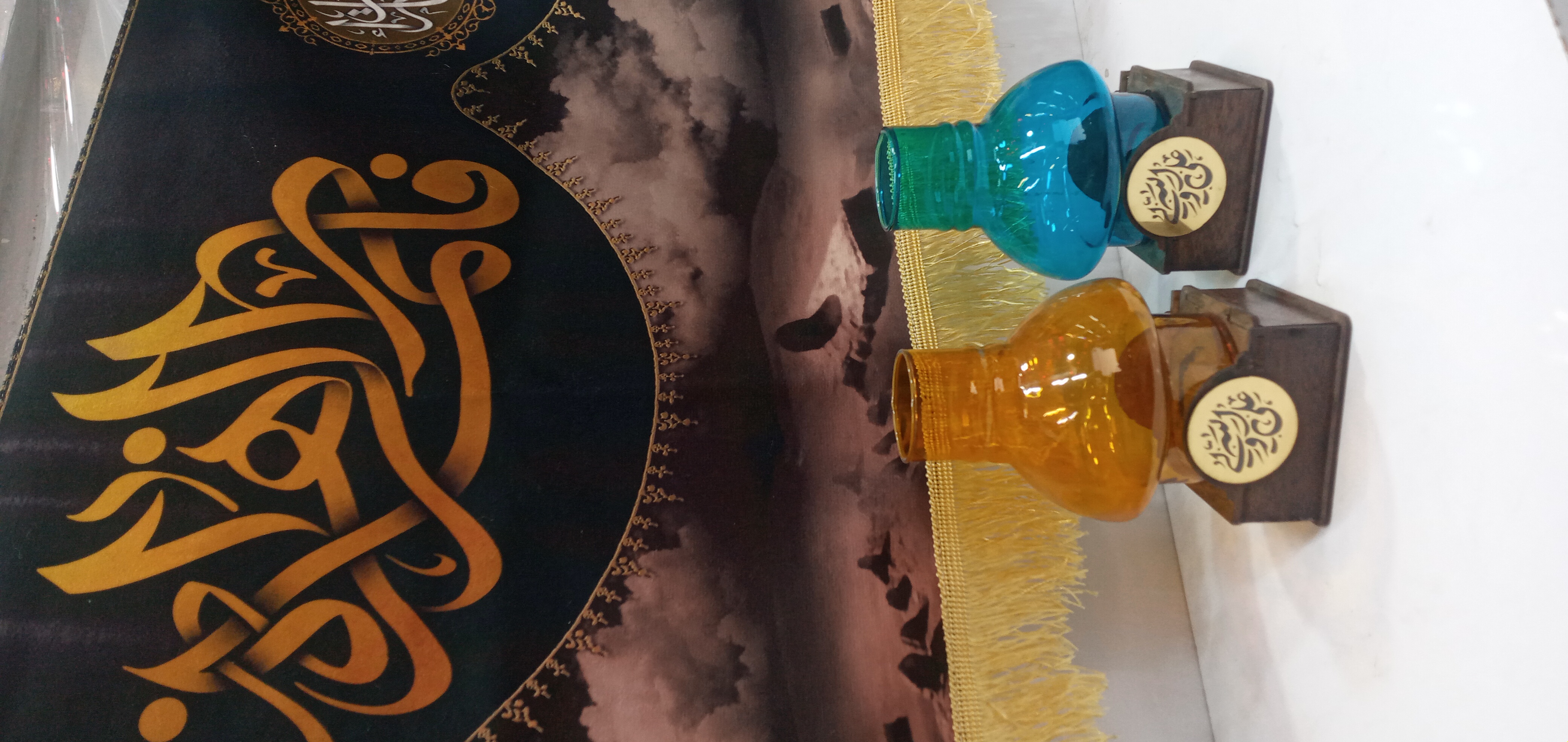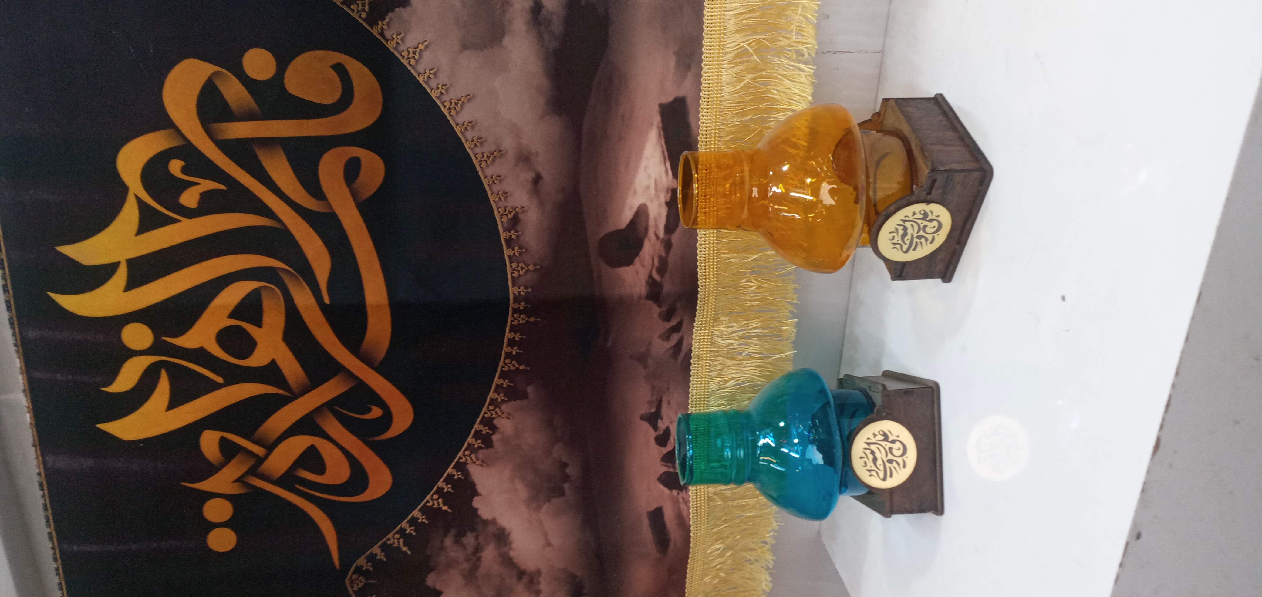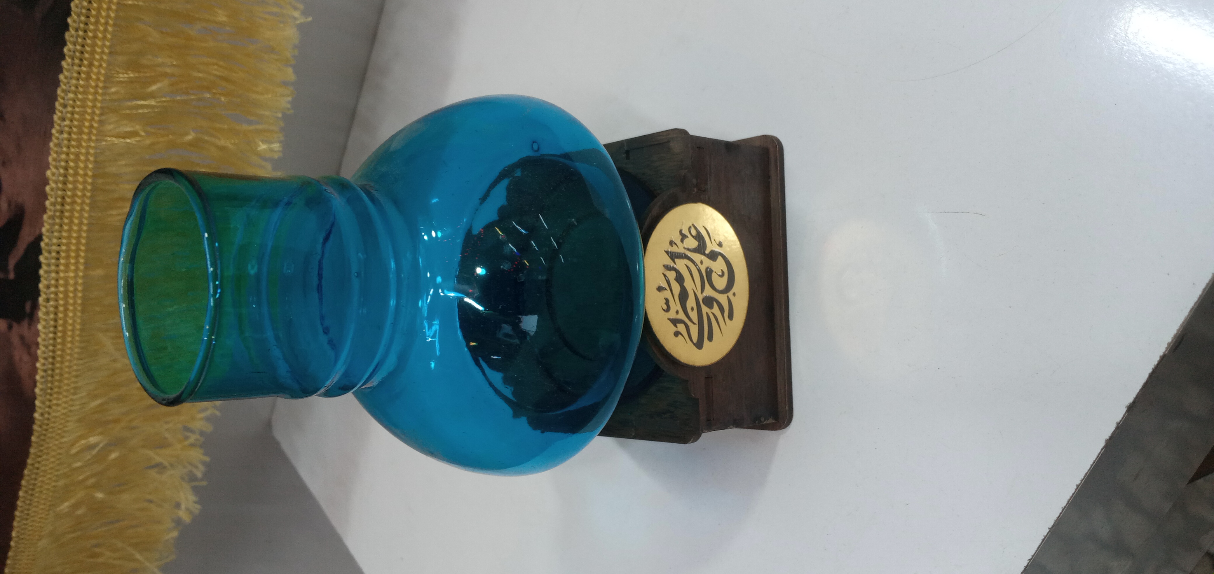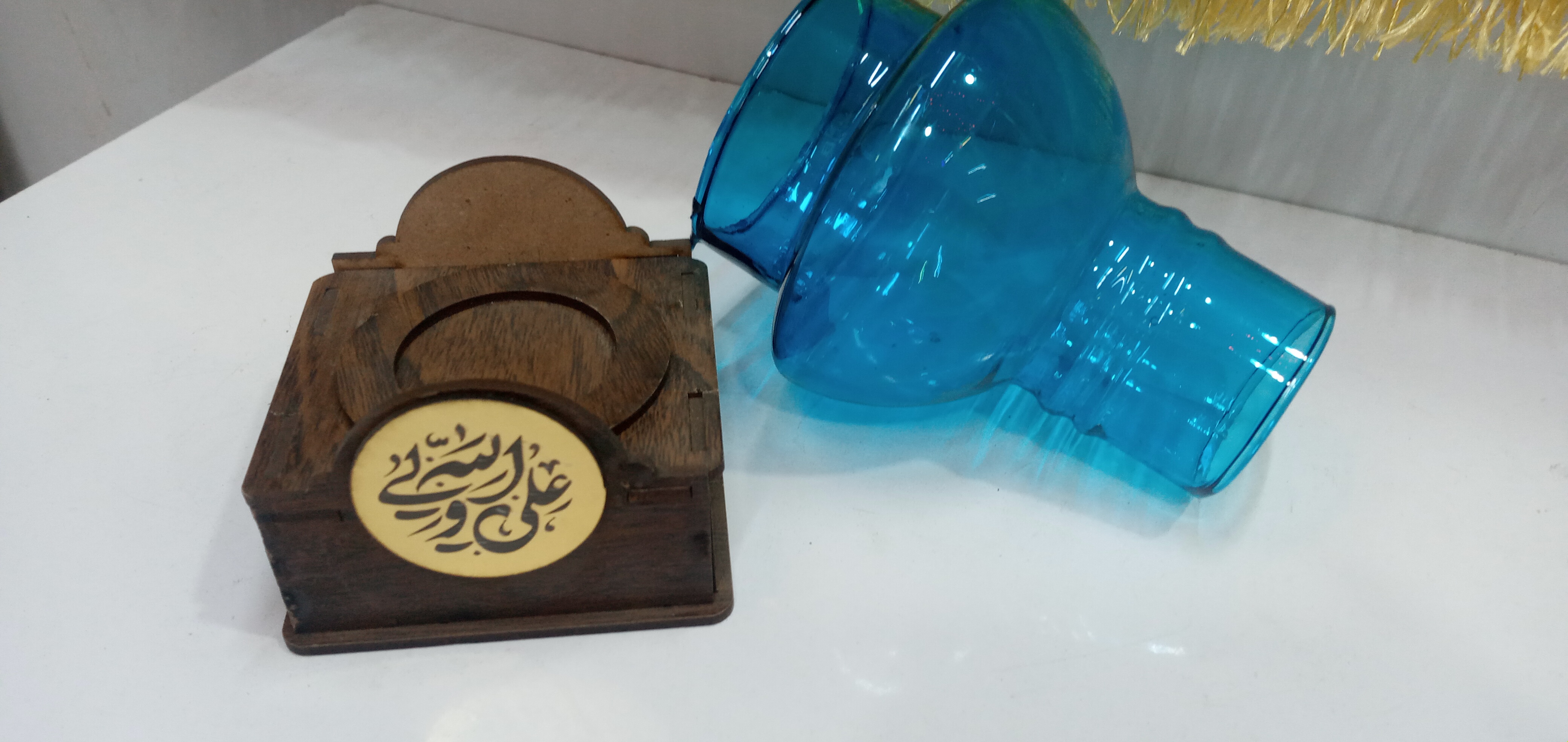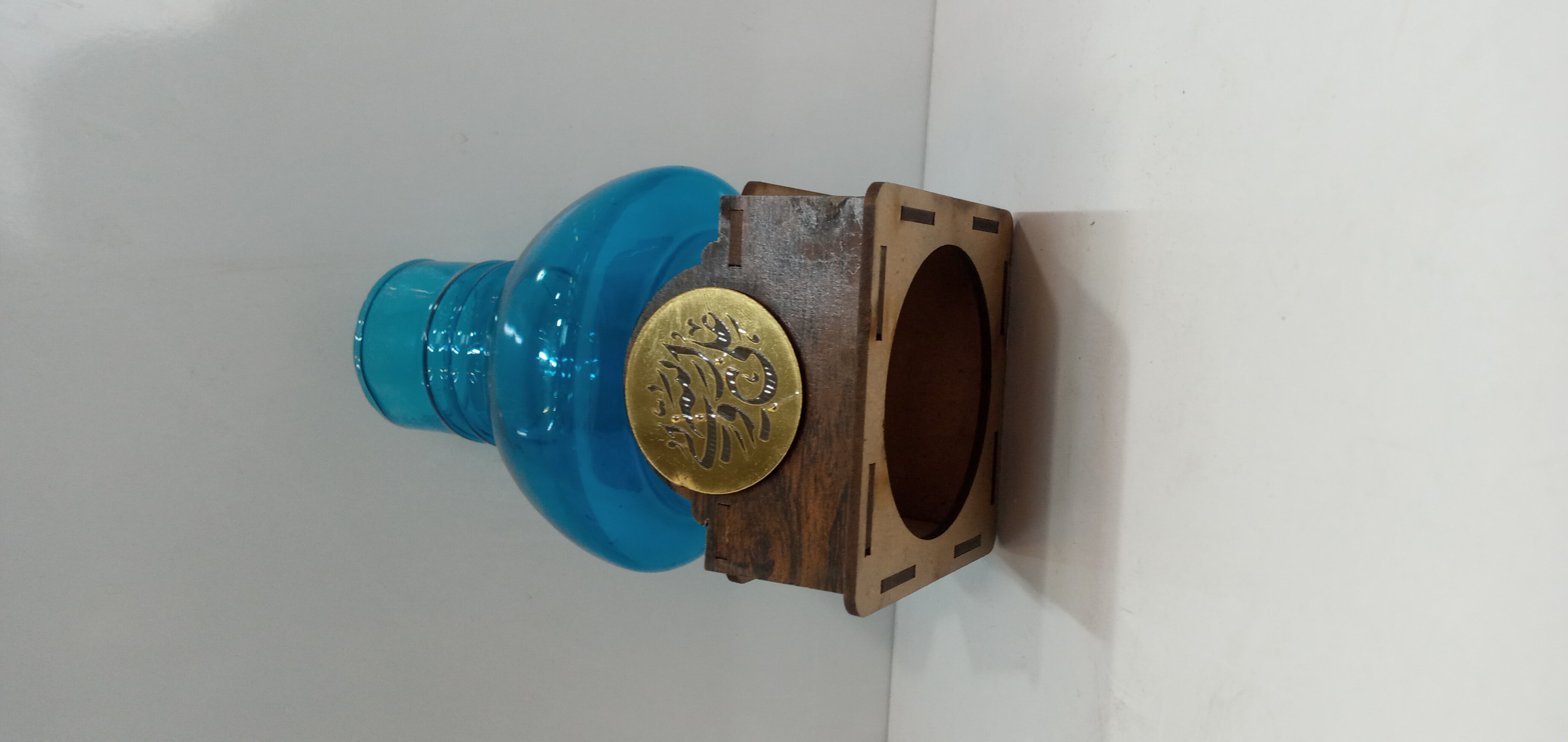 جا شمعی شیشه ای با پایه ام دی اف دارای ذکر علی(ع)ولیّ الله